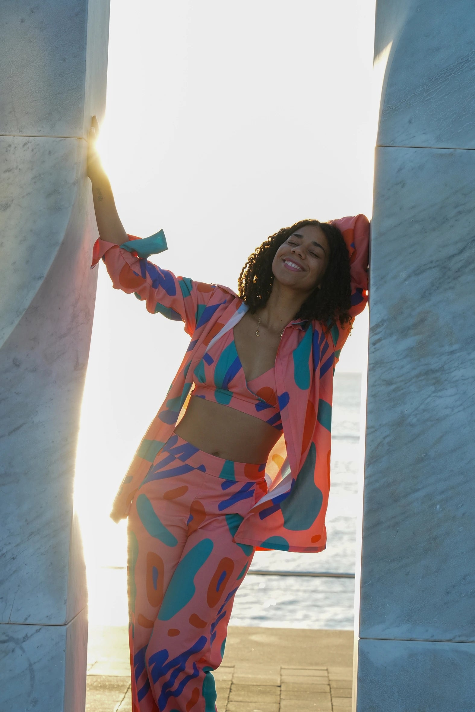 This means that no two pieces of our clothing look exactly the same, as the prints vary on each item.